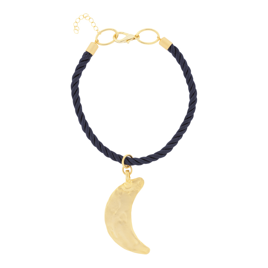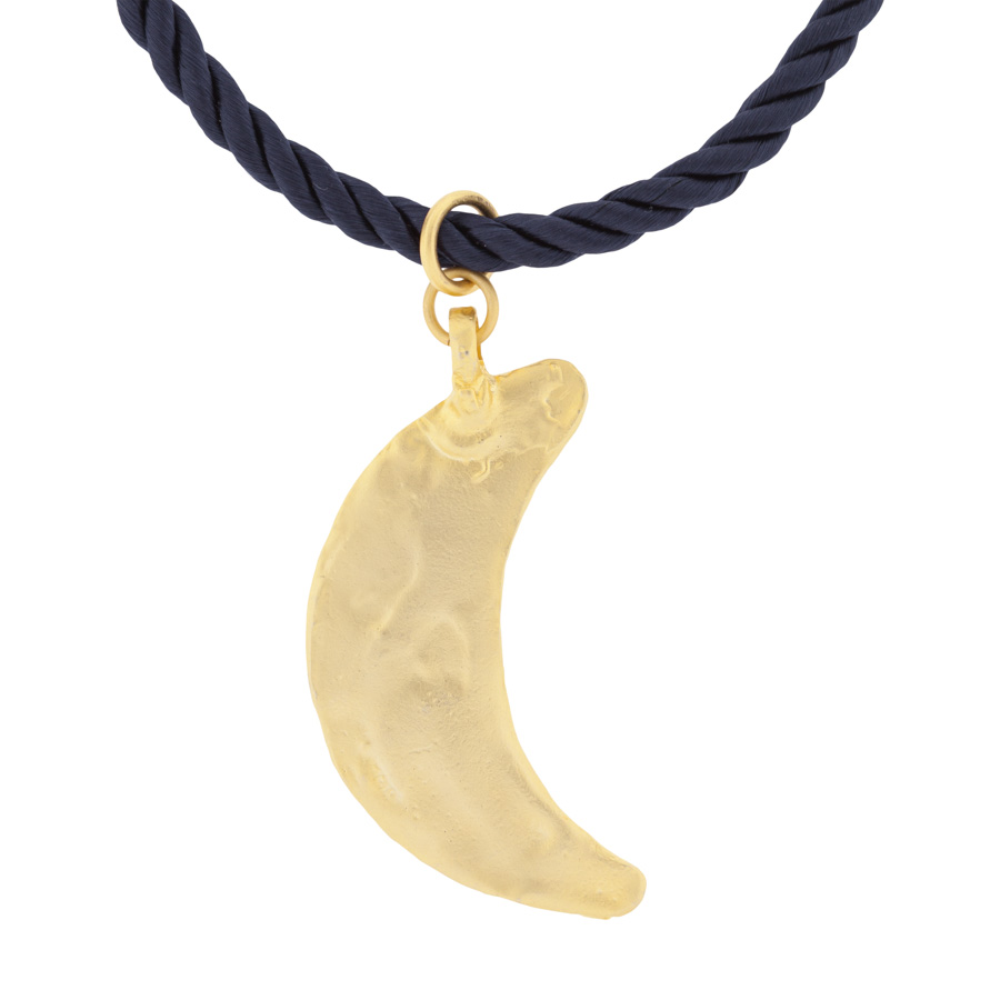 Luna de latón con baño de oro acabado en oro mate. Cierre y anillas en baño de oro acabado en mate.