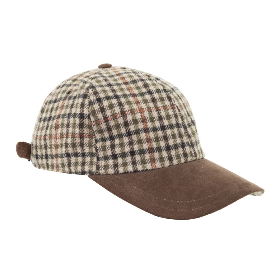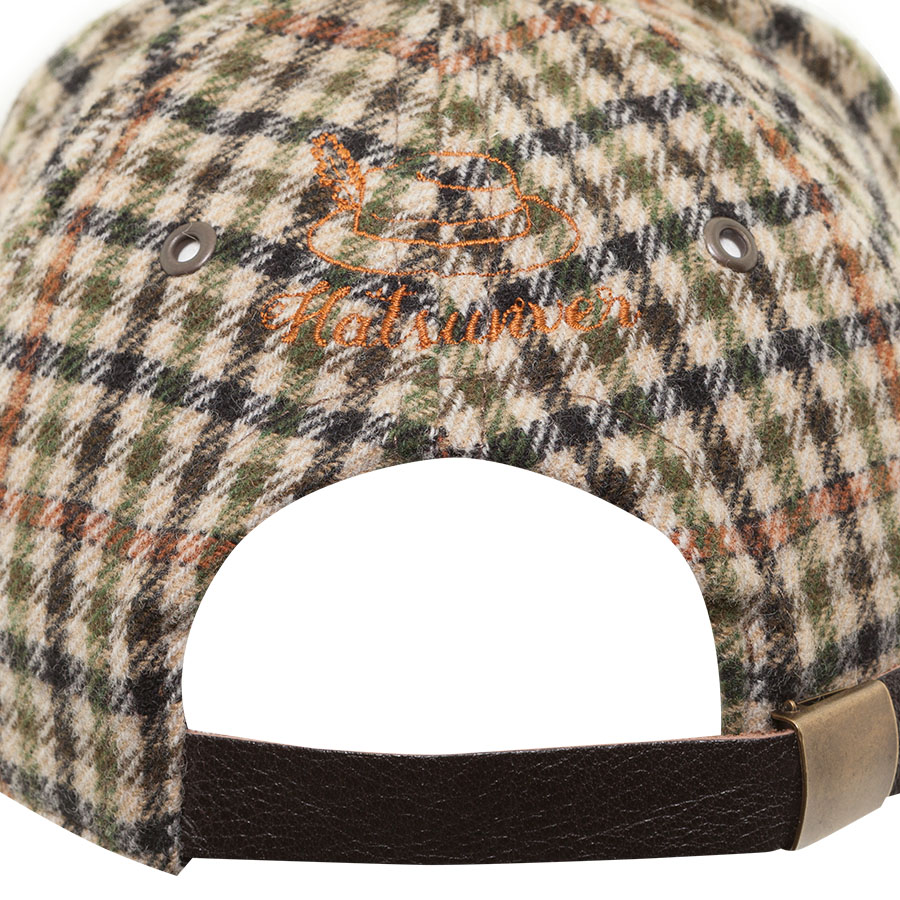 Gorra estilo béisbol 100% lana merina. Destaca por su diseño en cuadros de tamaño pequeño en diferentes tonalidades de marrones, haciendo contraste con la visera en marrón chocolate.