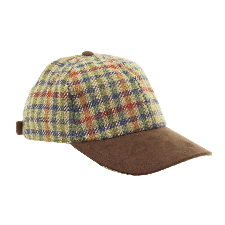 Gorra estilo Béisbol 100% lana merina. Destaca por su diseño en cuadros ingleses de color verde haciendo contraste con la visera en marrón chocolate.